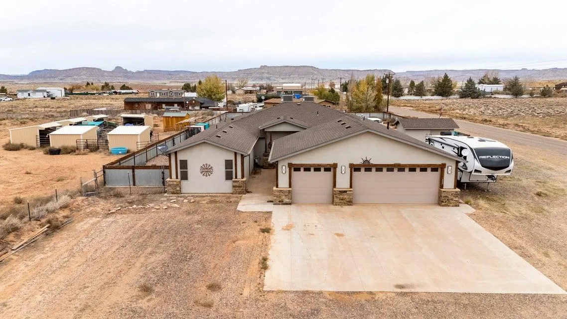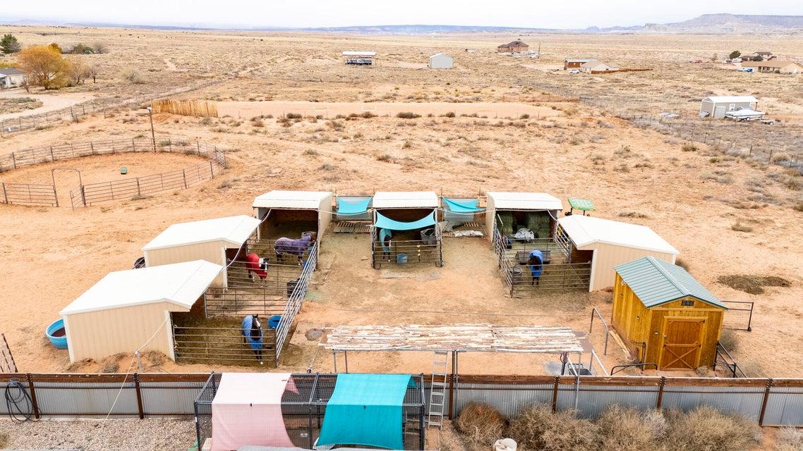 Now head west — you’ll find 3 acres fully fenced with horse fencing, cross-fenced into two pastures, and outfitted with six 12x12 horse sheds, walkout corrals, tack shed, hitching post, and a wash rack. Ride right from your property, or hit Lake Powell — just 18 miles away.